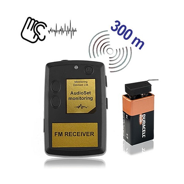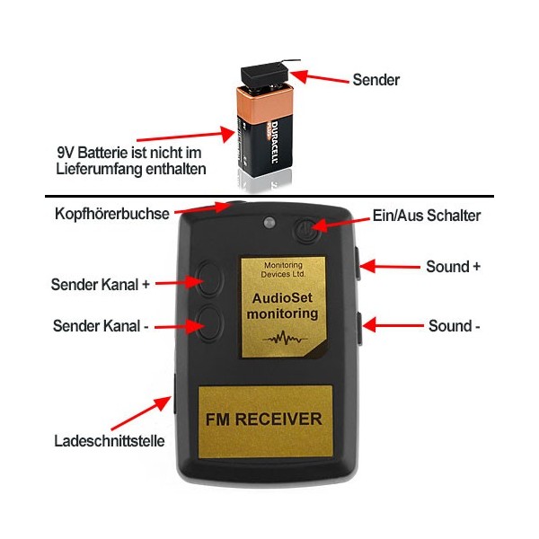 • Funk-Abhörsender komplett mit passendem Empfänger.