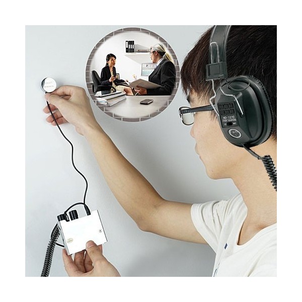 DIESES WAND-LAUSCHGERÄT, IN DER KOMBINATION AUS HOCHEMPFINDLICHEM MIKROFON & LEISTUNGSFÄHIGEM VERSTÄRKER KANN GESPRÄCHE DURCH WÄNDE, TÜREN, FENSTER UND STAHLPLATTEN HÖREN, SOFERN ES DIE PHYSIKALISCH-AKKUSTISCHEN GESETZMÄSSIGKEITEN ERLAUBEN.