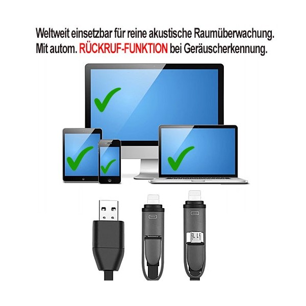 - GSM-Abhörgerät im intakten Handy-Ladekabel.