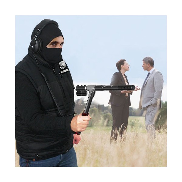 Falls Gespräche in offenem Gelände über grössere Distanzen observiert werden müssen ist das menschliche Ohr in aller Regel nicht ausreichend um noch verwertbare Informationen wahrzunehmen. Unter diesen Bedingungen lässt sich diese Aufgabe nur unter Einsatz elektronischer Hilfsmittel wie unserem herausragenden Richtmikrofon lösen. Durch die exakte Ausrichtung unseres Richtmikrofons ist es möglich, bestimmte Geräuschquellen zu foccusieren. Die durch die Schalleintrittsöffnungen, des mit schaltbarer Richtcharakteristik (Niere/Superniere) einstellbaren Richtmikrofons eindringenden akkustischen Signale werden entsprechend ihrer Frequenzzugehörigkeit akustisch verstärkt dem Hochleistungs-Audioverstärker X007, mit Anschlussbuchsen für Kopfhörer und Digital-Audio zugeführt dort optimiert und können dann über Kopfhörer live mitgehört oder digitalisiert auf Handy, Tablet oder PC aufgezeichnet werden. Im Zusammenwirken von Richtmikrofon und Operationsverstärker, kann man auch geringe Geräusche über grössere Entfernungen erfassen, z.B. zur Tierbeobachtung und Observationsaufgaben bei Überwachung von Gesprächen im freien Gelände. Da das Gerät natürlich auch zum „Abhören“ geeignet ist, weisen wir darauf hin, daß Persönlichkeitsrechte zu beachten sind. Das Mikrofon entspricht allen relevanten EU-Richtlinien und ist entsprechend gekennzeichnet.