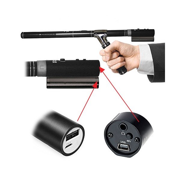 System: Elektret/Niere/Superniere Frequenzbereich: 50-16000 Hz Impedanz: normal 1 kOhm/tele 2,3 kOhm Empfindlichkeit: 3/22 mV/Pa/1 kHz Maximaler Schalldruck: 115 dB Signal/Rauschabstand: 60 dB Stromversorgung: 1,5-V-Mignon Gehäuse: Metall | Mikrofon-Vorverstärker und A/D-Wandler 16-Bit / 44.1/48 kHz direkt auf Mikrofon aufsteckbar integrierte 48V Phantomspeisung Kopfhörerausgang 3,5 mm Klinke, Mono Mikrofonvorverstärker mit regelbarem Gain Stromversorgung über USB |