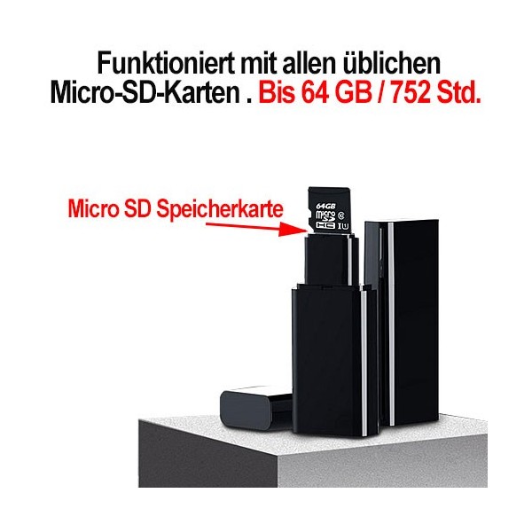 - 64 GB Speicher für für bis zu 752 Std. Aufnahmezeit.