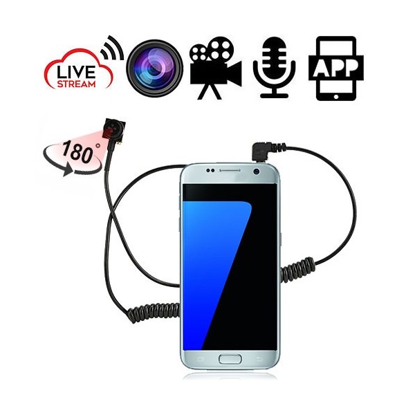 Die diskrete, digitale Live-Stream OTG-Videokamera fürs Handy ist eine hochauflösende Nadelöhr-Kamera mit einem lichtstarkem Tarn-Objektiv. Man kann sie als externe Kamera an an die meisten modernen Smartphones oder Tablets mit Betriebssystemen Android und Windows anschließen, die über die Schnittstelle USB-OTG (On The Go) verfügen. Die verdeckt tragbare Kamera bietet mit Hilfe kostenloser App die Möglichkeit der Echtzeit-Bildübertragung direkt von Handy zu Handy, Tablet oder auch auf einen PC. Die winzigen-Abmessungen der Kamera und die Möglichkeit der Tarnung des Objektivs durch aufgeschraubte Tarnknöpfe ermöglichen eine diskrete Benutzung in vielen Situationen, wie z.B. das Verstecken im Hemd/Blusen- oder Jacken-Knopfloch. Wenn die Kamera mit aufgeschraubtem Tarnknopf an der richtigen Position der Kleidung angebracht ist, beispielsweise am Revers des Sakkos, ist eine sehr diskrete Bildübertragung möglich.
